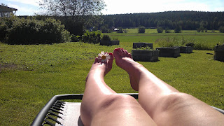 Barnen är helt prickiga och jag håller på att klia sönder halva kroppen på nätterna. Ja detta har då varit en väldigt myggig och knottig sommar hittills. Förrförra året köpte jag en ekologisk oljeblandning som skulle verka avskräckande mot bitande flygfän, men den var man tvungen att smörja på ofta för att det skulle hjälpa. På en timme i blåbärsskogen kunde man få smörja på minst tre-fyra gånger. I år har vi i fått lov att bruka Djungelolja och MyggA för att inte bli helt uppätna i vissa situationer. Men dessa medel ska helst ej användas på barn och absolut inte på barn under tre år, så det känns ju inte så kul att smörja in sig med överhuvudtaget.